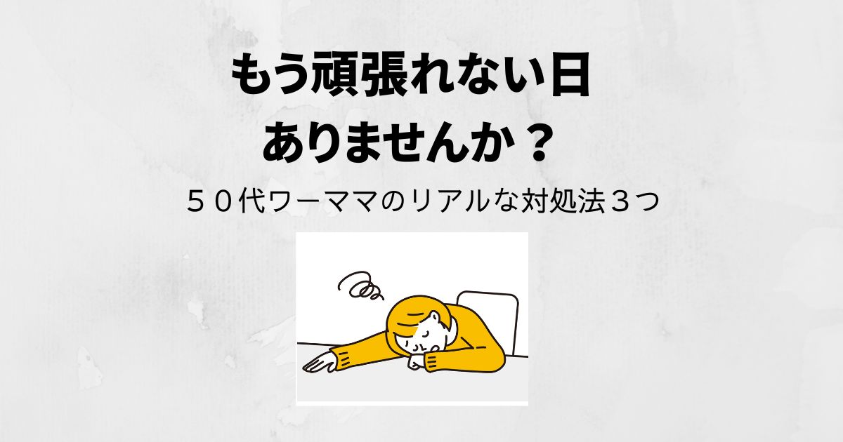 ・仕事・家事・子供のこと・体力 全部重なった日。 「今日はもう無理…」そう思う日もありますよね。 50代ワーママになってからは、体力的にしんどいと感じる日も増えてきました。 そんなとき、私がやっていることをまとめてみました。 50代ワーママにも「... 50代ワーママのリアルな暮らし